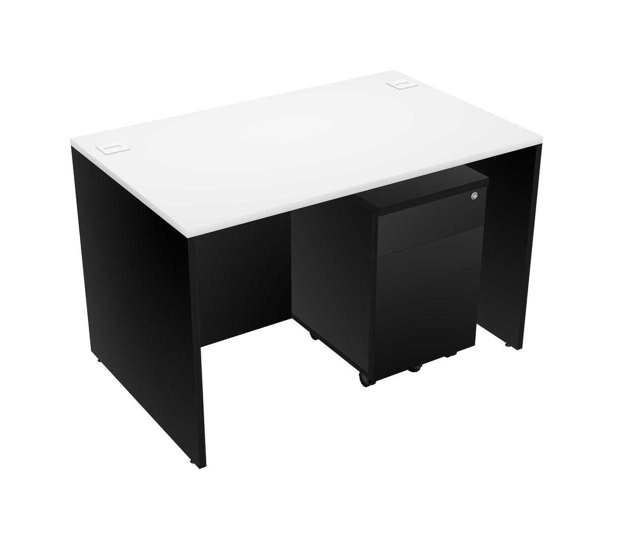 Bureau Rectangulaire Blanc Avec Tiroirs Mobiles En Bois Noir