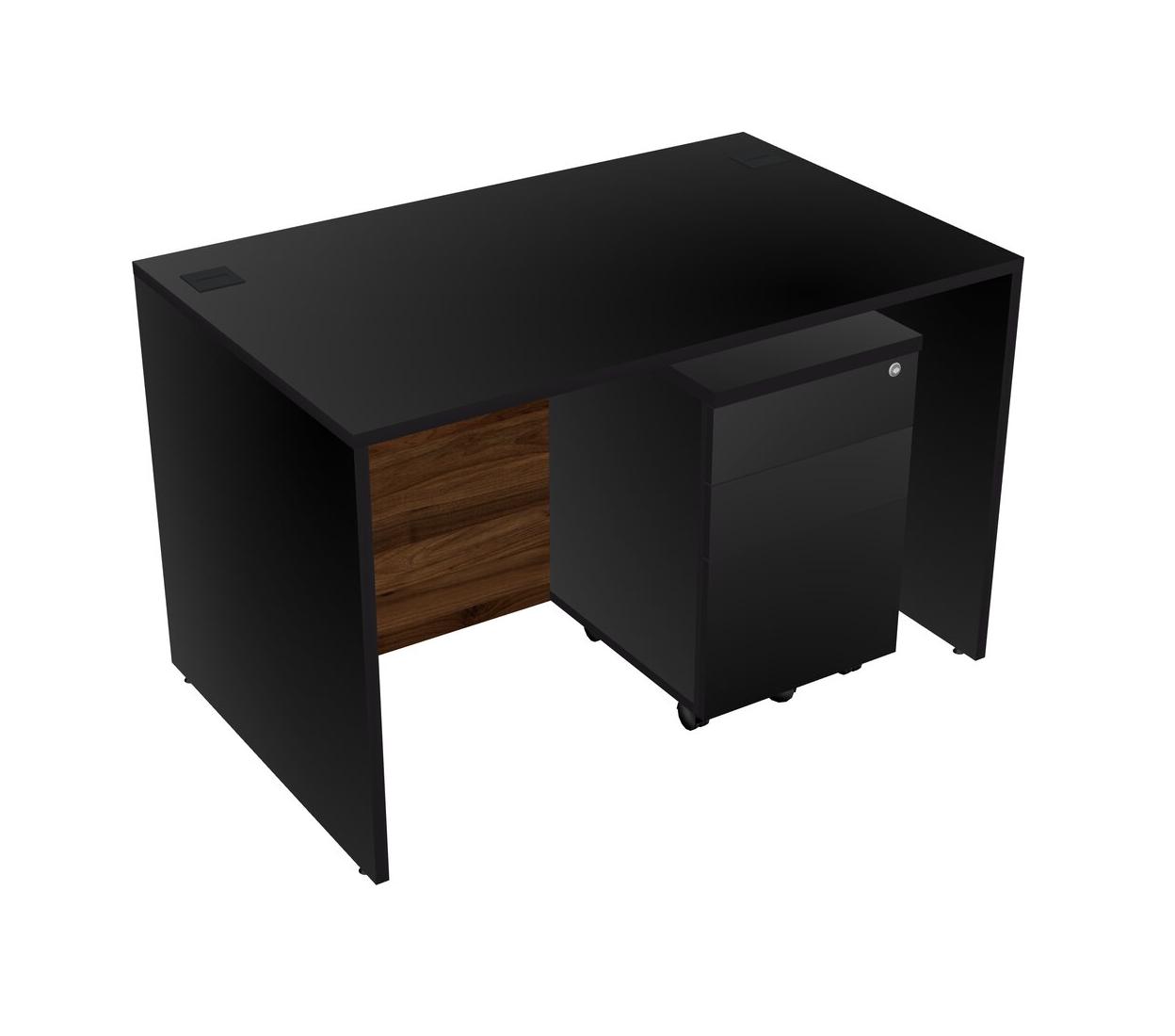 Bureau Rectangulaire Noir Avec Tiroirs Mobiles En Bois Noir