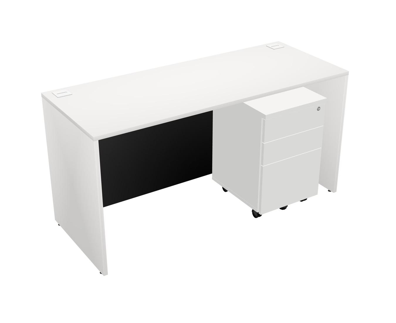 Bureau Rectangulaire Blanc Avec Tiroirs Mobiles En Bois Blanc
