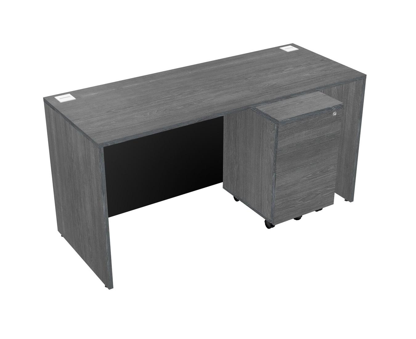 Bureau Rectangulaire Gris Avec Tiroirs Mobiles En Bois Gris