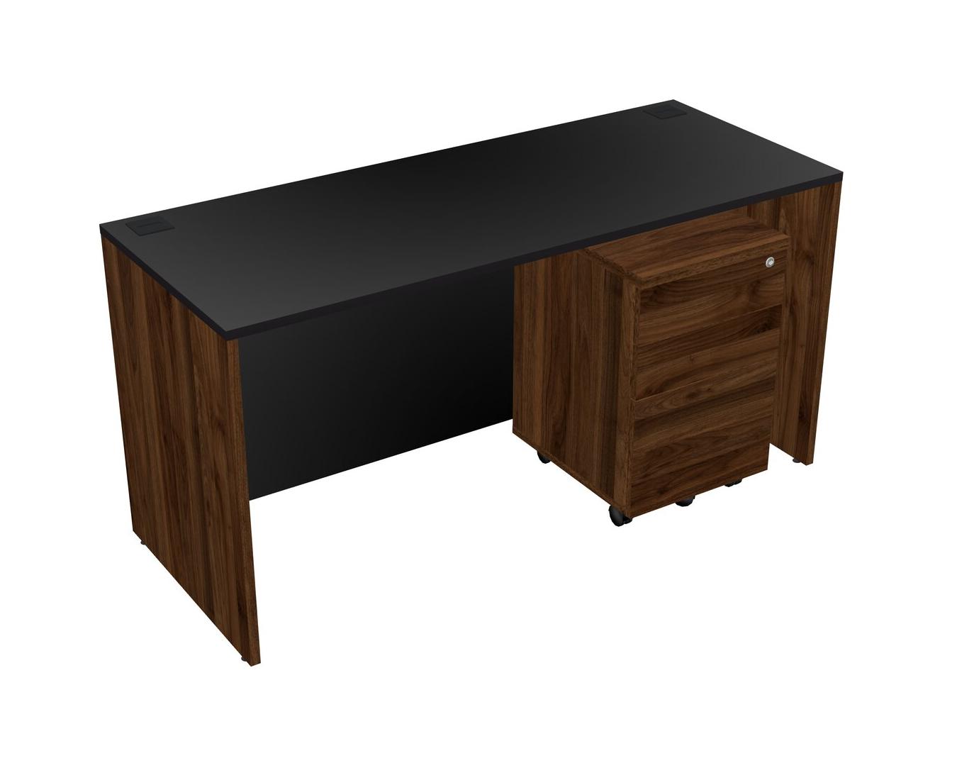 Bureau Rectangulaire Noir Avec Tiroirs Mobiles En Bois De Noyer Columbia