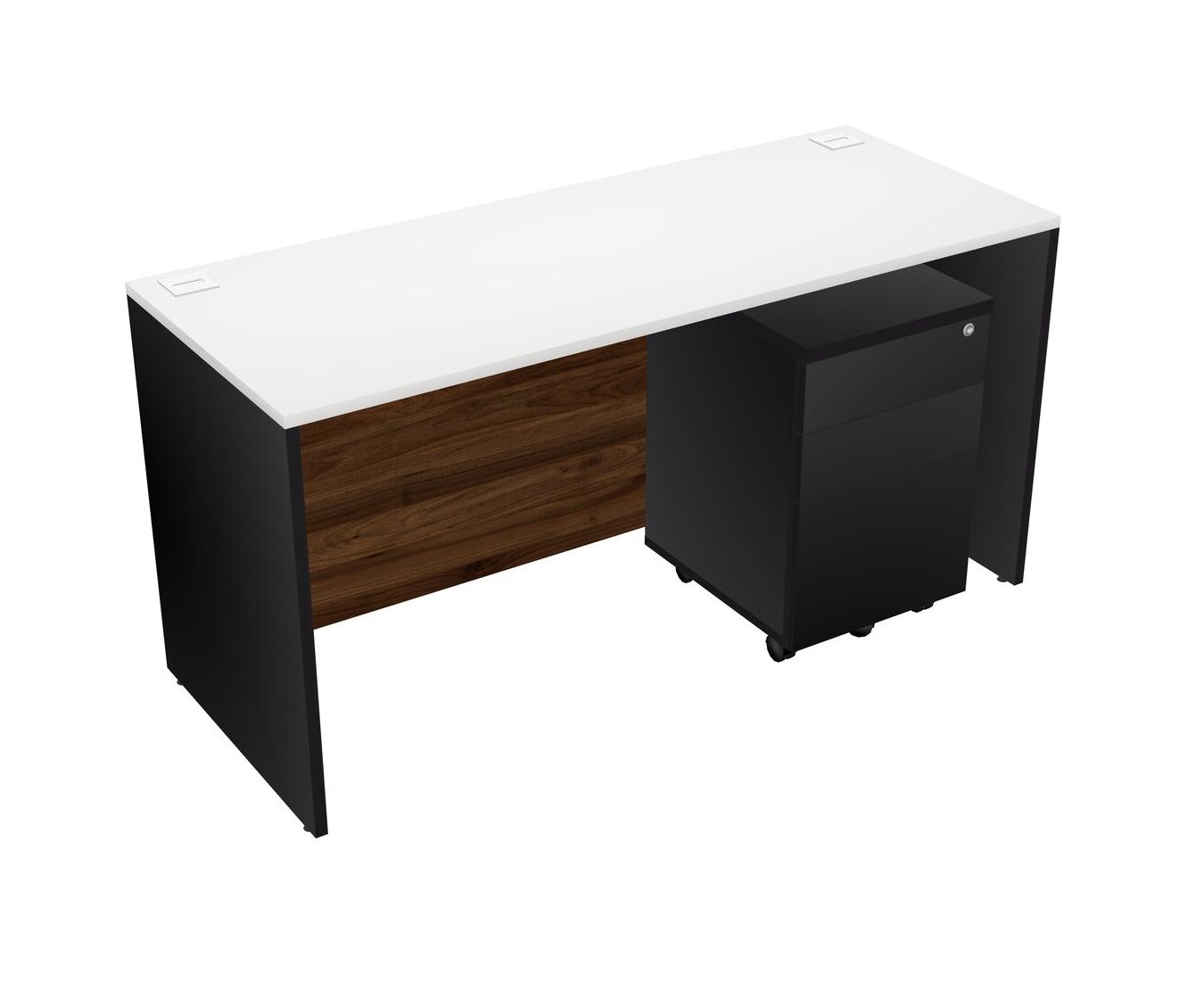 Bureau Rectangulaire Blanc Avec Tiroirs Mobiles En Bois Noir