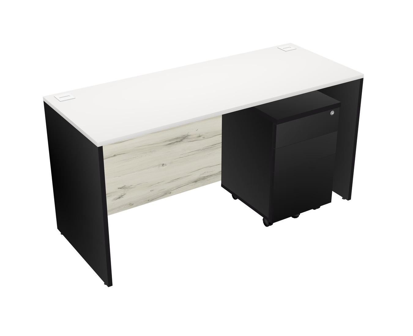 Bureau Rectangulaire Blanc Avec Tiroirs Mobiles En Bois Noir