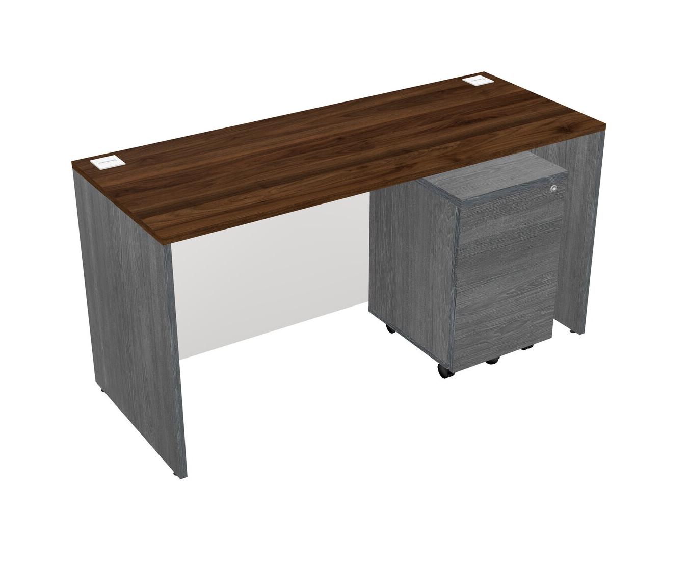 Bureau Rectangulaire En Noyer Columbia Avec Tiroirs Mobiles En Bois Gris