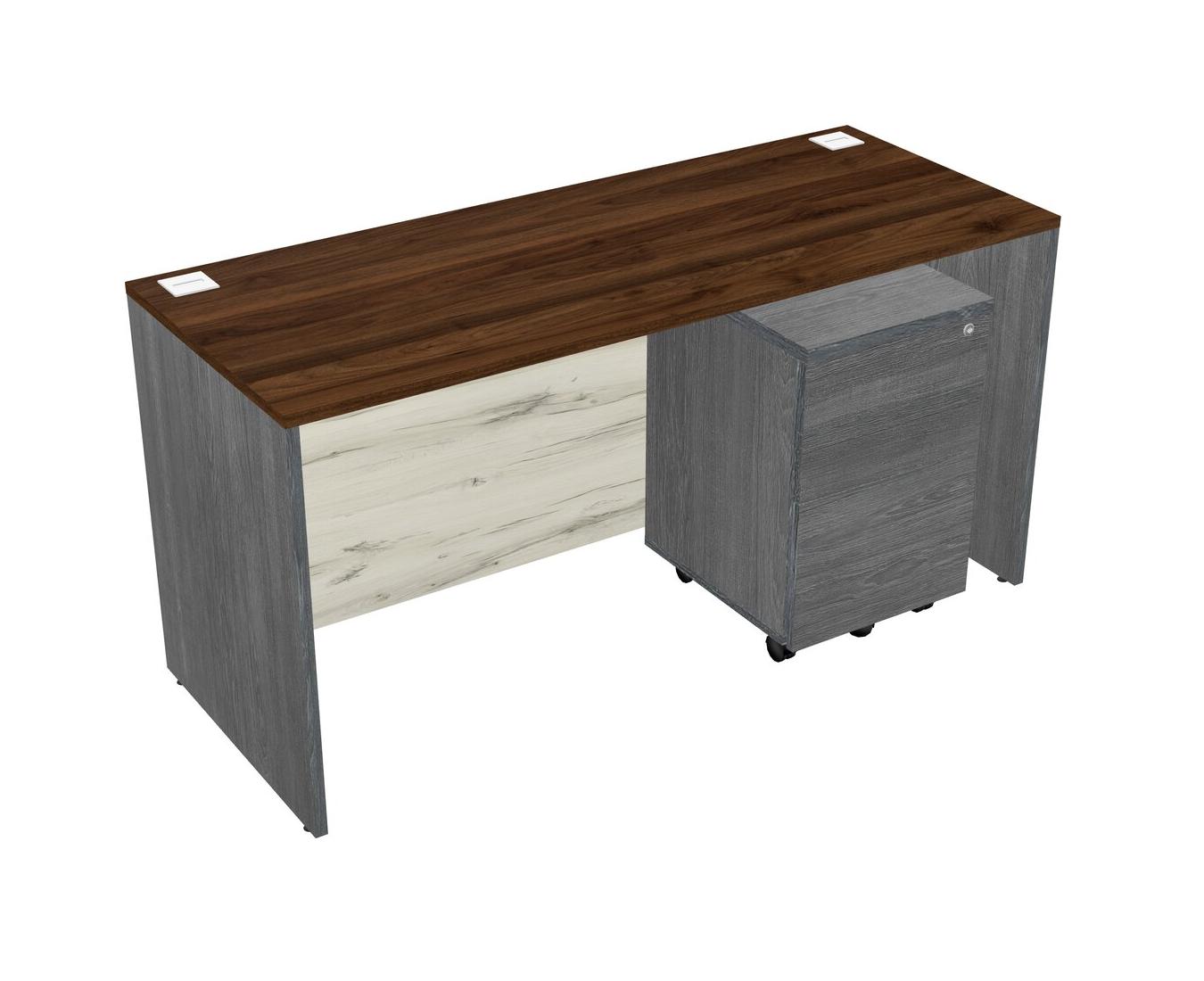 Bureau Rectangulaire En Noyer Columbia Avec Tiroirs Mobiles En Bois Gris