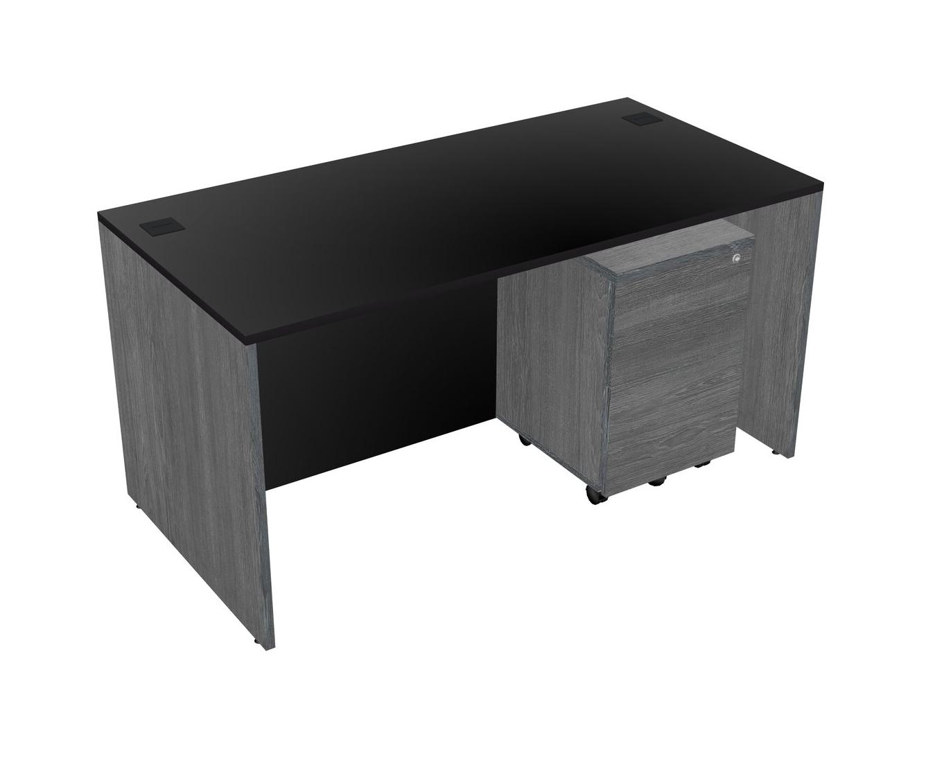 Bureau Rectangulaire Noir Avec Tiroirs Mobiles En Bois Gris