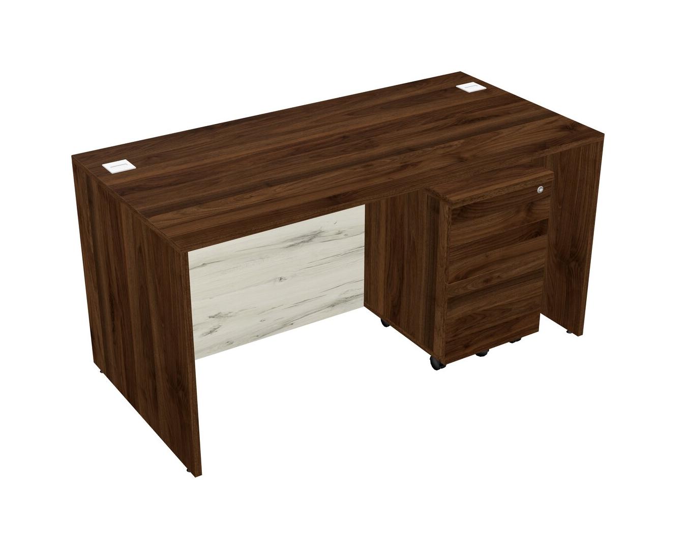 Bureau Rectangulaire En Noyer Columbia Avec Tiroirs Mobiles En Bois