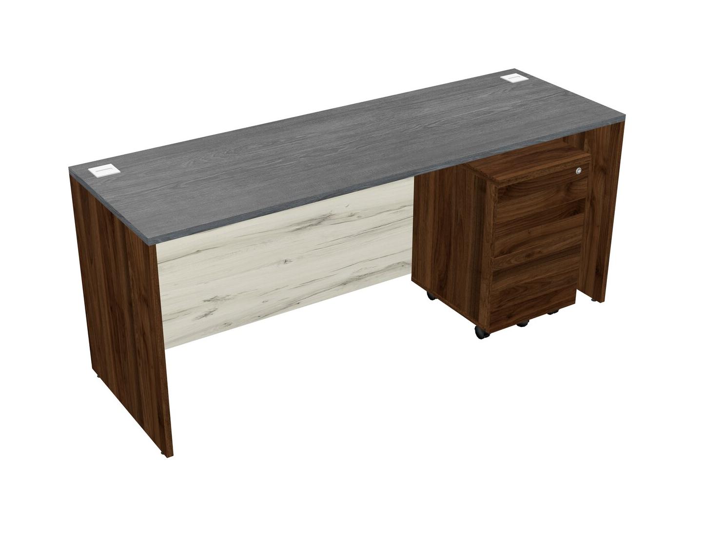 Bureau Rectangulaire Gris Avec Tiroirs Mobiles En Bois De Noyer Columbia