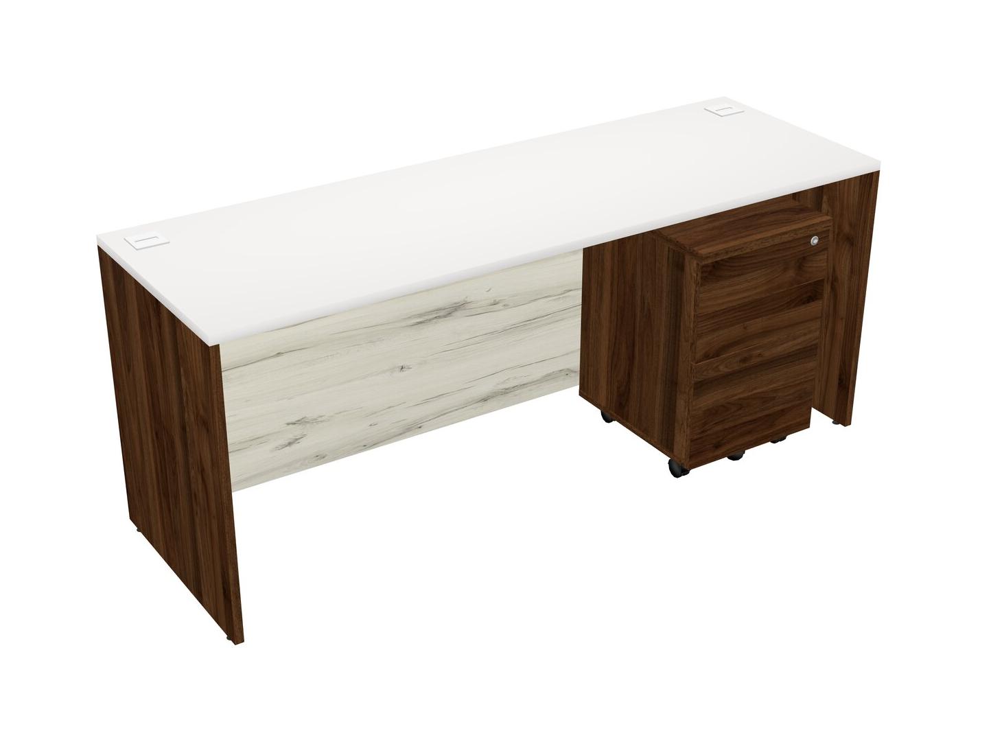 Bureau Rectangulaire Blanc Avec Tiroirs Mobiles En Bois De Noyer Columbia