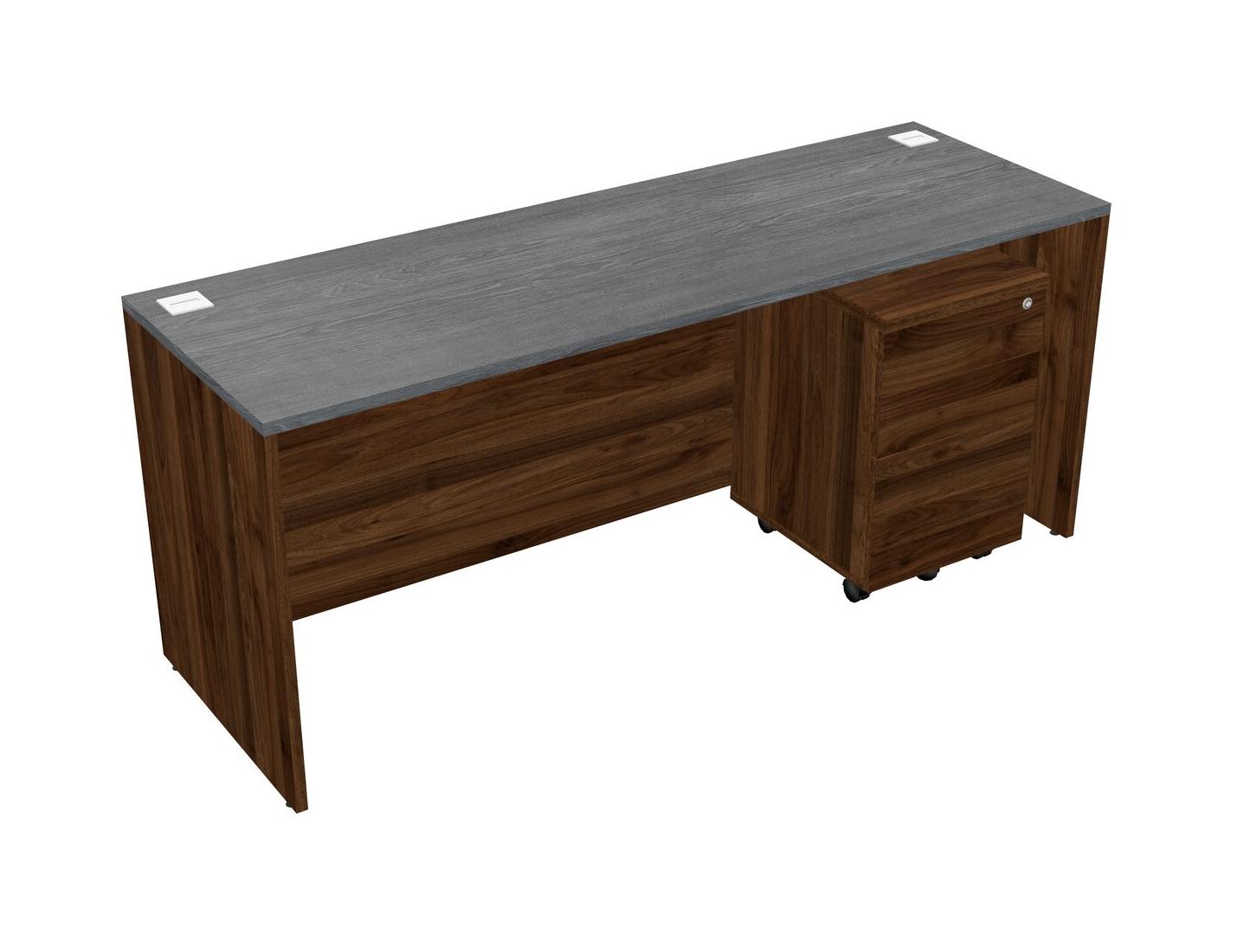 Bureau Rectangulaire Gris Avec Tiroirs Mobiles En Bois De Noyer Columbia