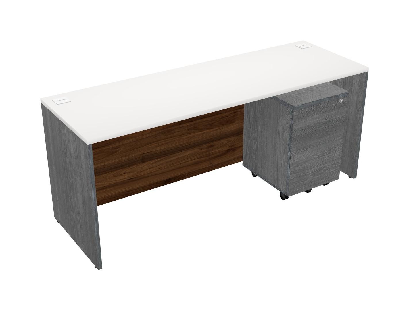 Bureau Rectangulaire Blanc Avec Tiroirs Mobiles En Bois Gris
