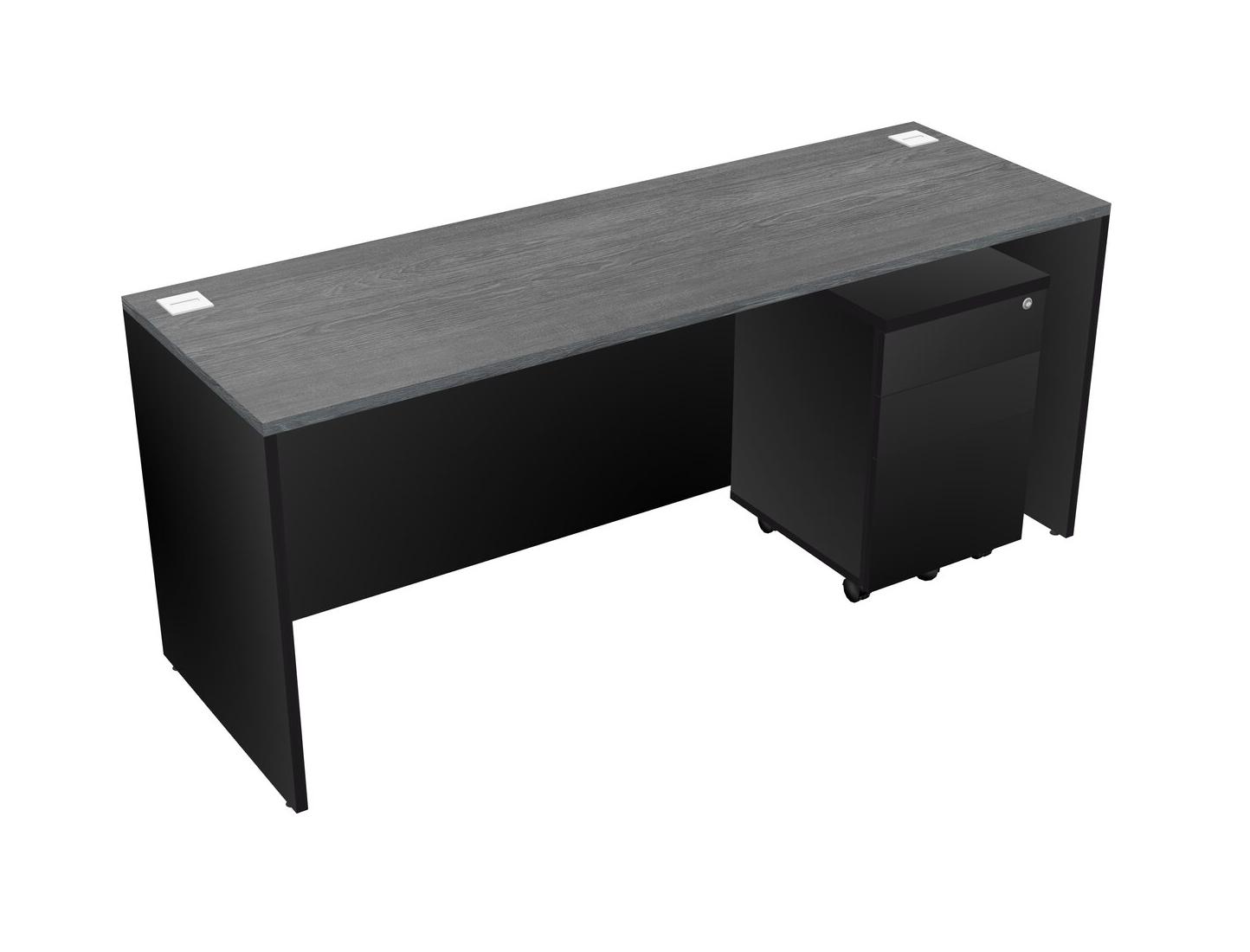Bureau Rectangulaire Gris Avec Tiroirs Mobiles En Bois Noir