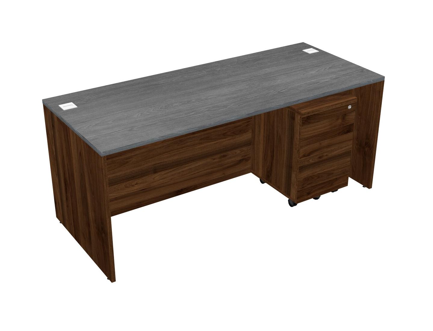 Bureau Rectangulaire Gris Avec Tiroirs Mobiles En Bois De Noyer Columbia