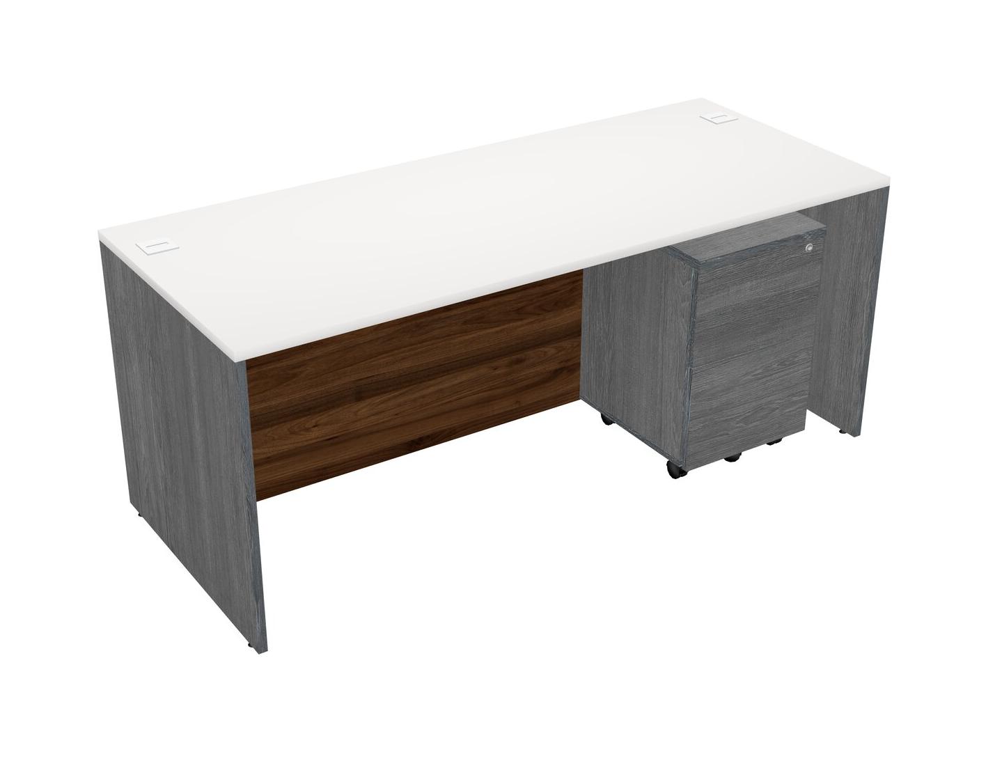 Bureau Rectangulaire Blanc Avec Tiroirs Mobiles En Bois Gris