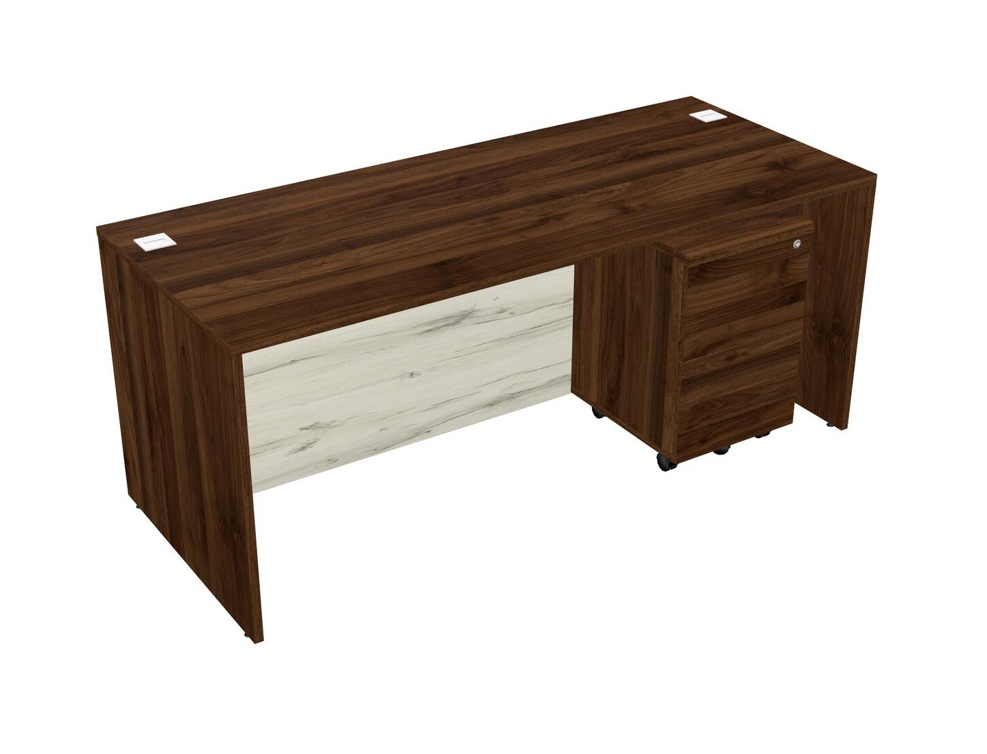 Bureau Rectangulaire En Noyer Columbia Avec Tiroirs Mobiles En Bois