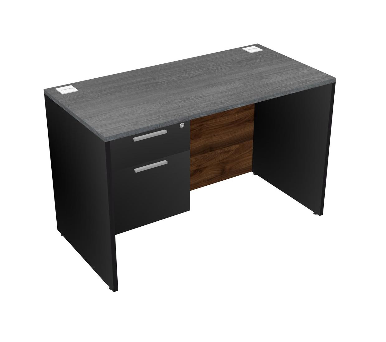 Bureau Rectangulaire Gris Avec Tiroirs Suspendus Noirs