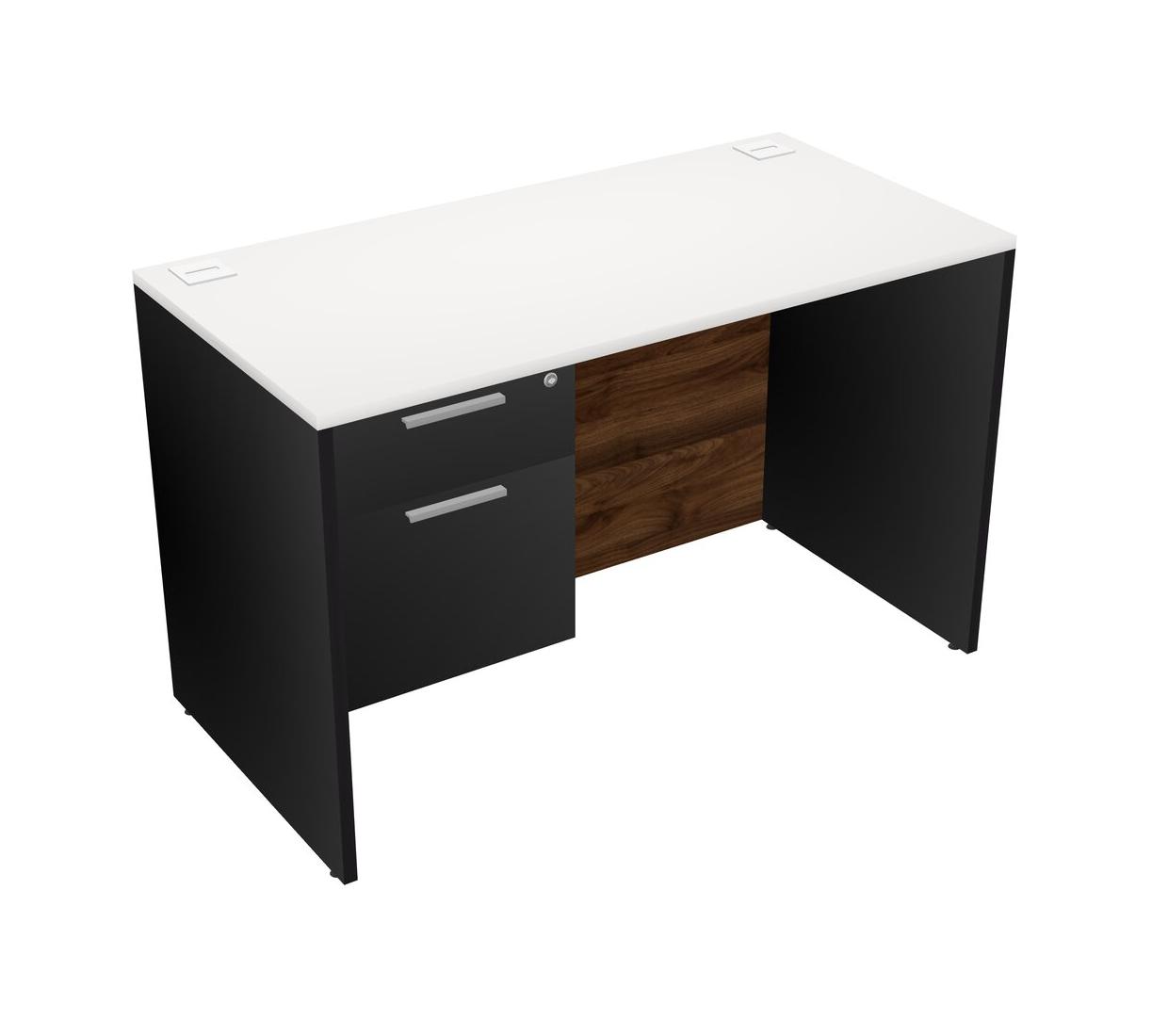 Bureau Rectangulaire Blanc Avec Tiroirs Suspendus Noirs