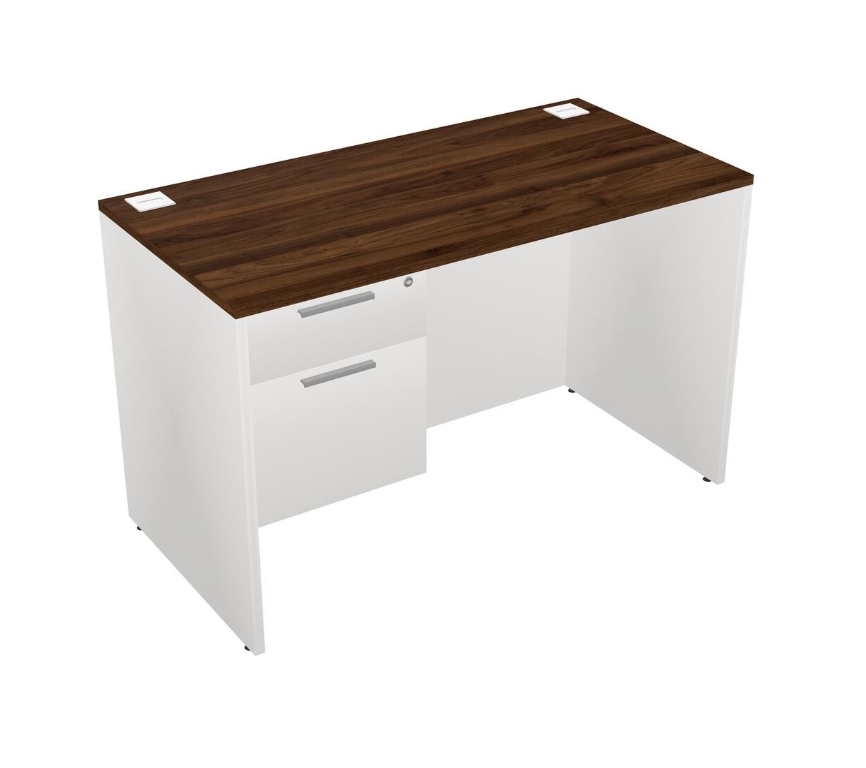 Bureau Rectangulaire En Noyer Columbia Avec Tiroirs Suspendus Blancs