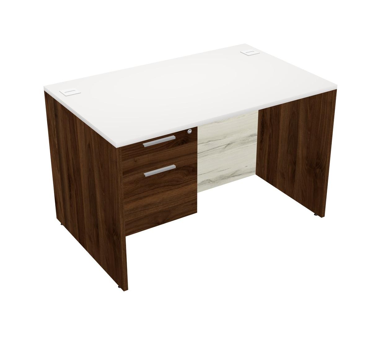 Bureau Rectangulaire Blanc Avec Tiroirs Suspendus En Noyer Columbia