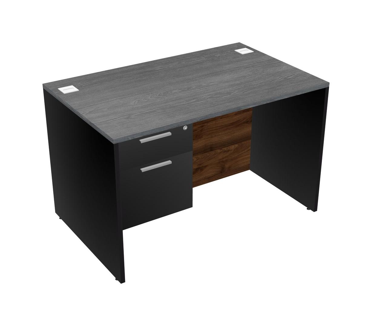 Bureau Rectangulaire Gris Avec Tiroirs Suspendus Noirs
