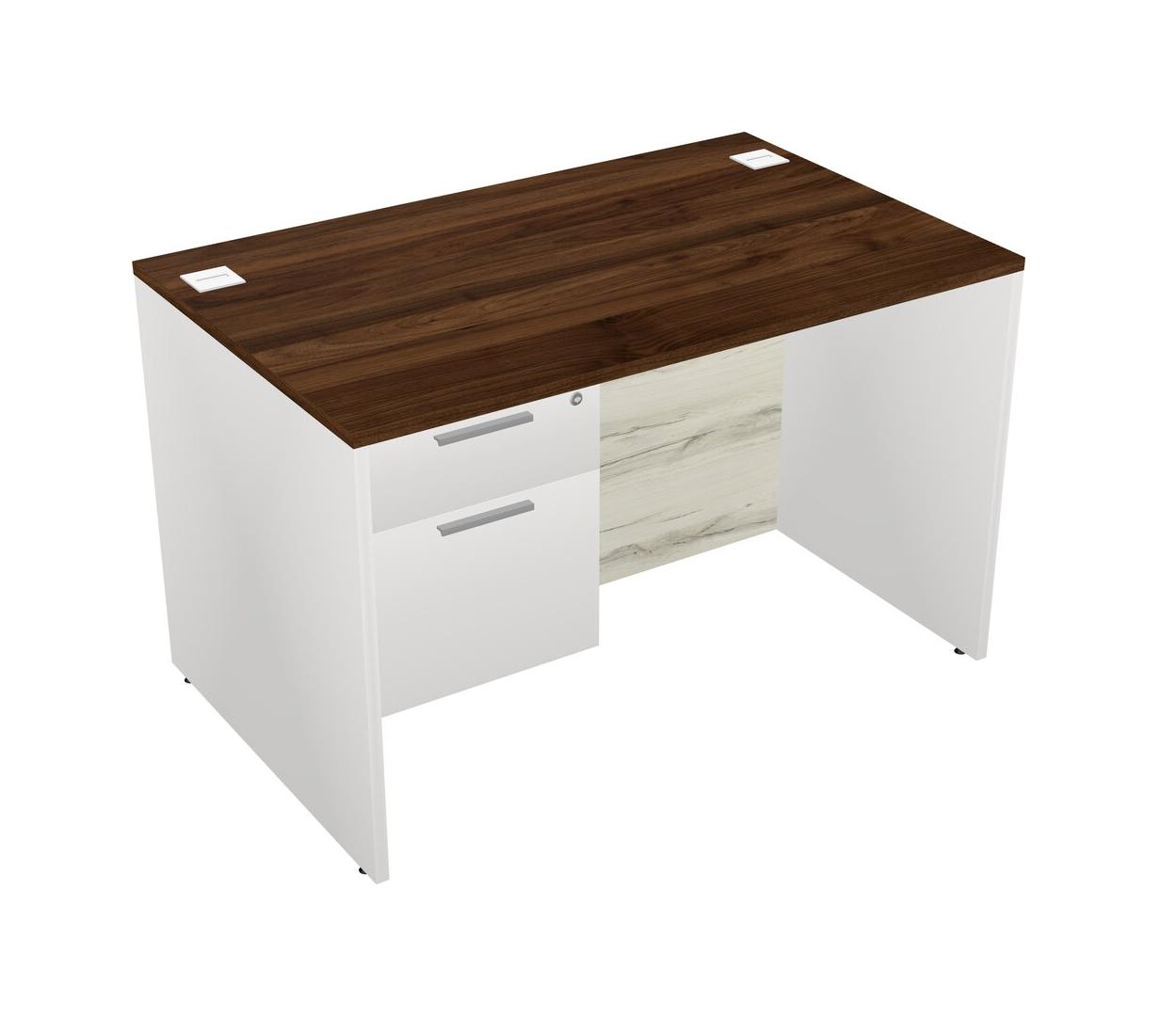 Bureau Rectangulaire En Noyer Columbia Avec Tiroirs Suspendus Blancs