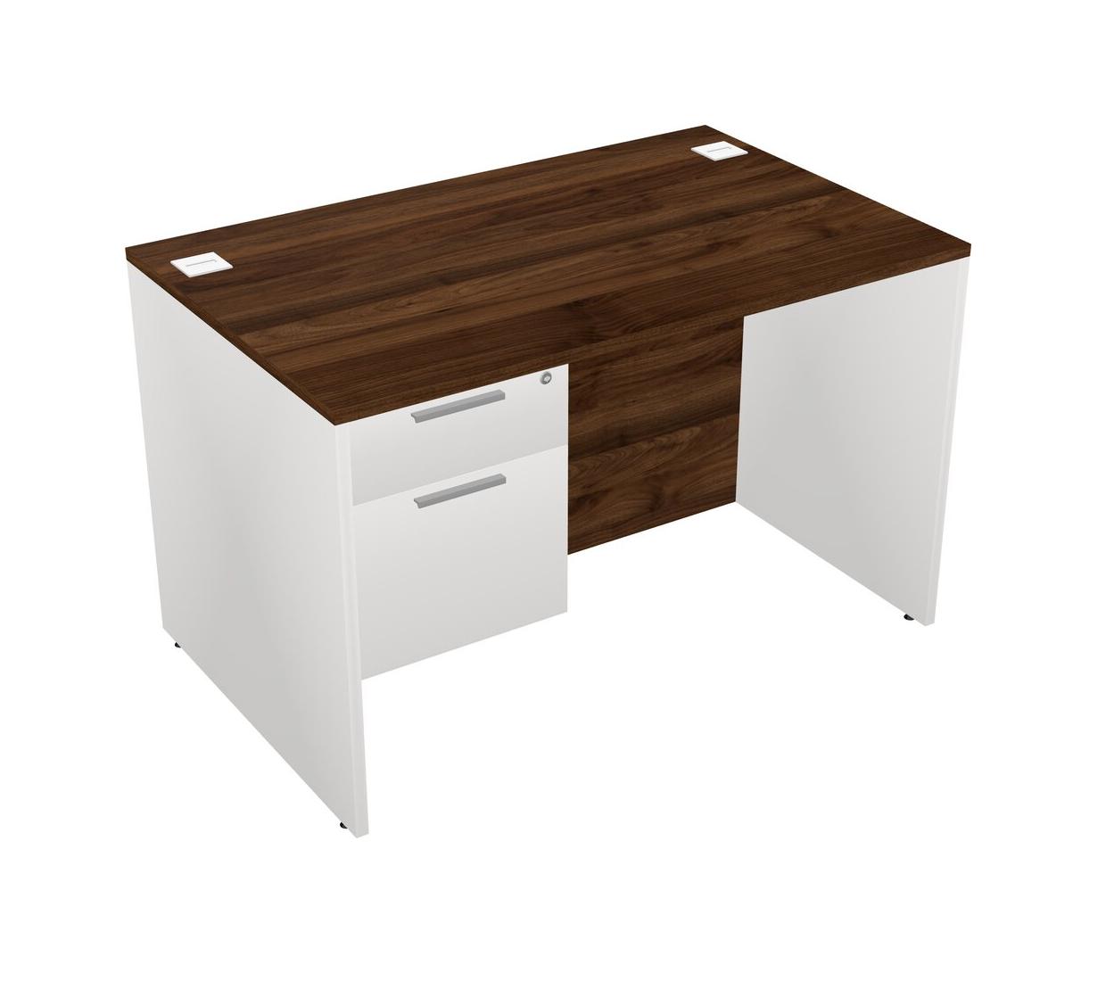 Bureau Rectangulaire En Noyer Columbia Avec Tiroirs Suspendus Blancs