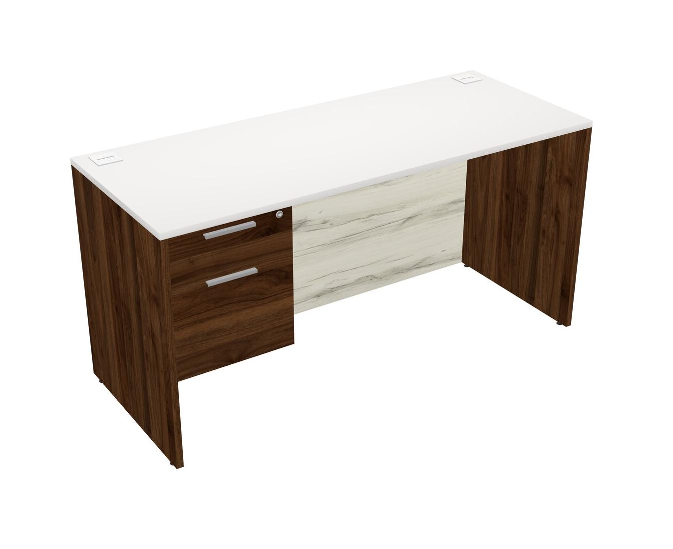 Bureau Rectangulaire Blanc Avec Tiroirs Suspendus En Noyer Columbia