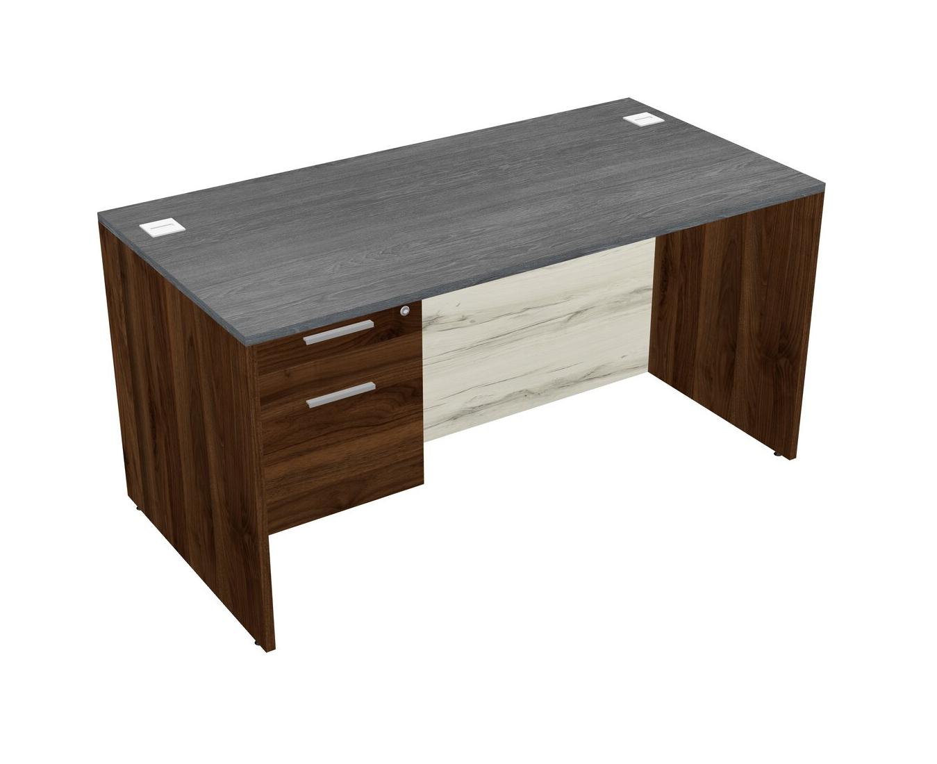 Bureau Rectangulaire Gris Avec Tiroirs Suspendus En Noyer Columbia