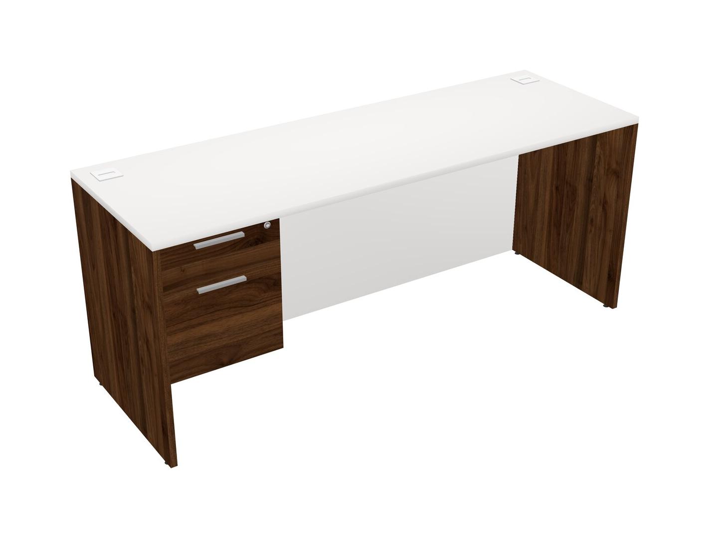 Bureau Rectangulaire Blanc Avec Tiroirs Suspendus En Noyer Columbia