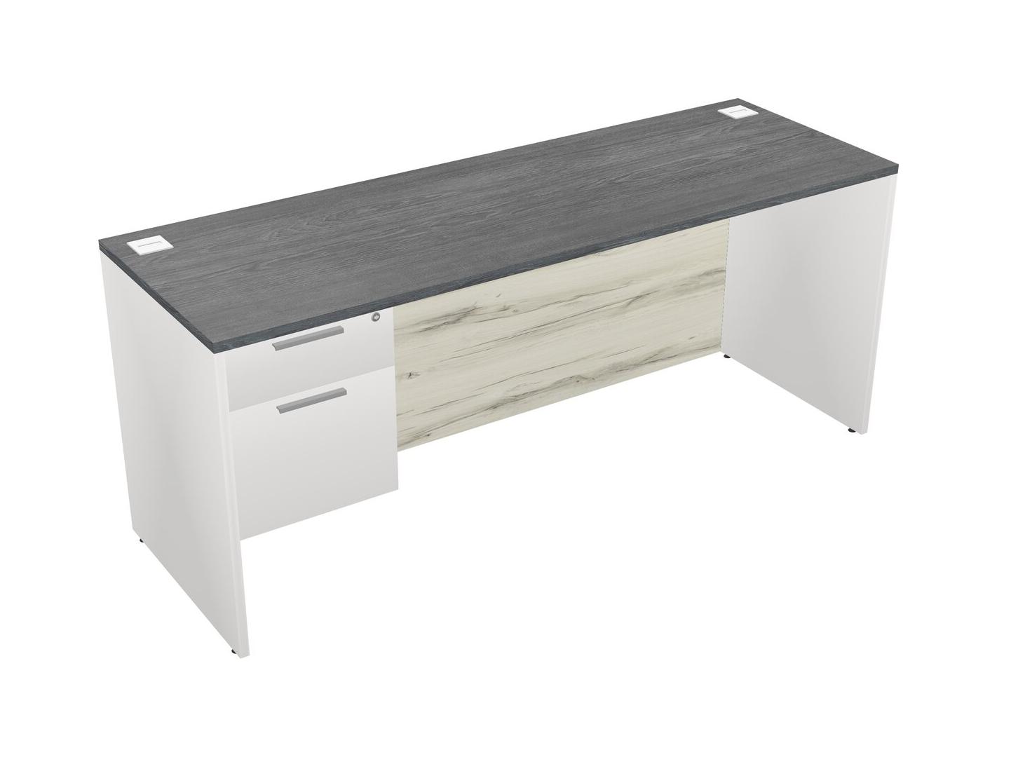 Bureau Rectangulaire Gris Avec Tiroirs Suspendus Blancs