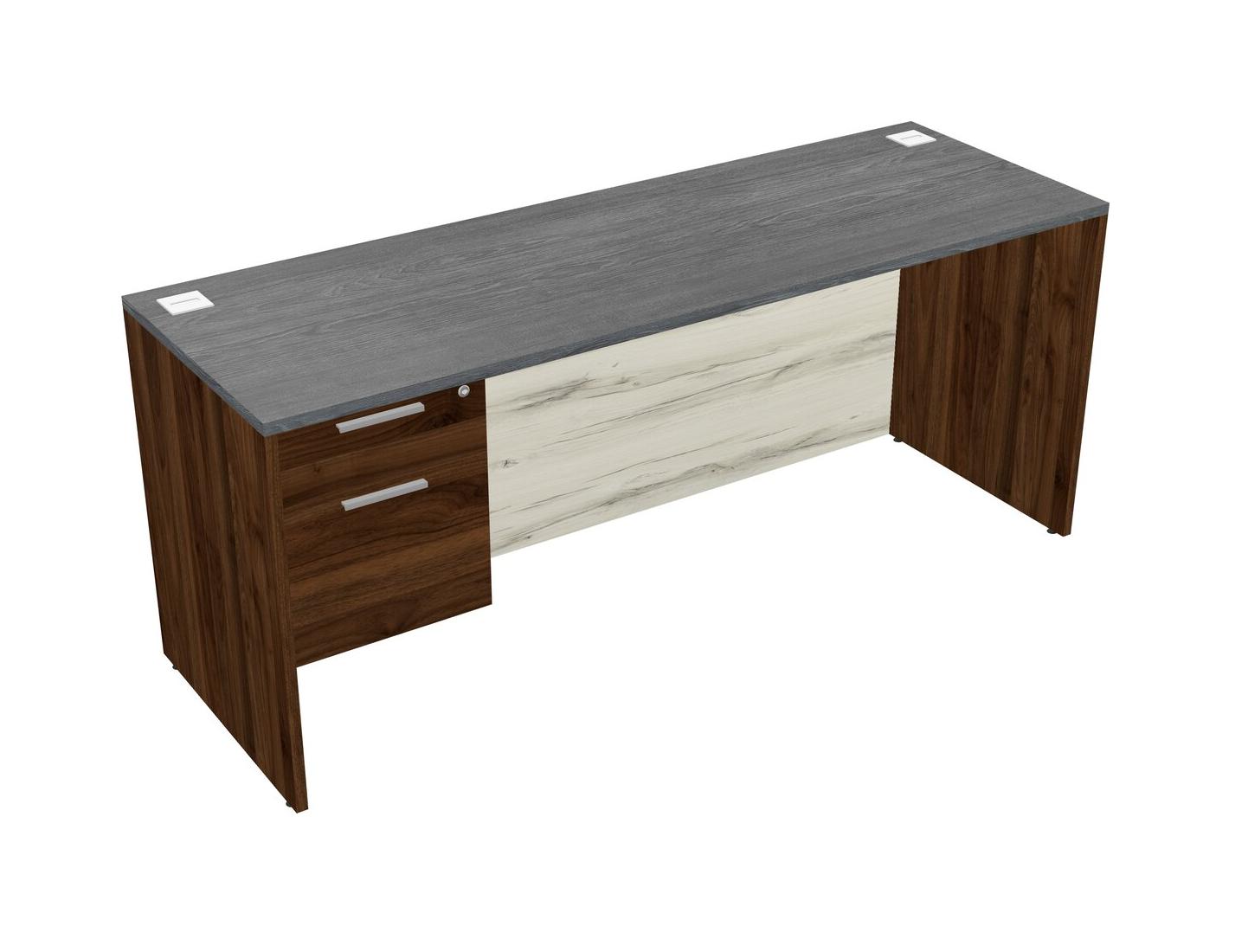 Bureau Rectangulaire Gris Avec Tiroirs Suspendus En Noyer Columbia