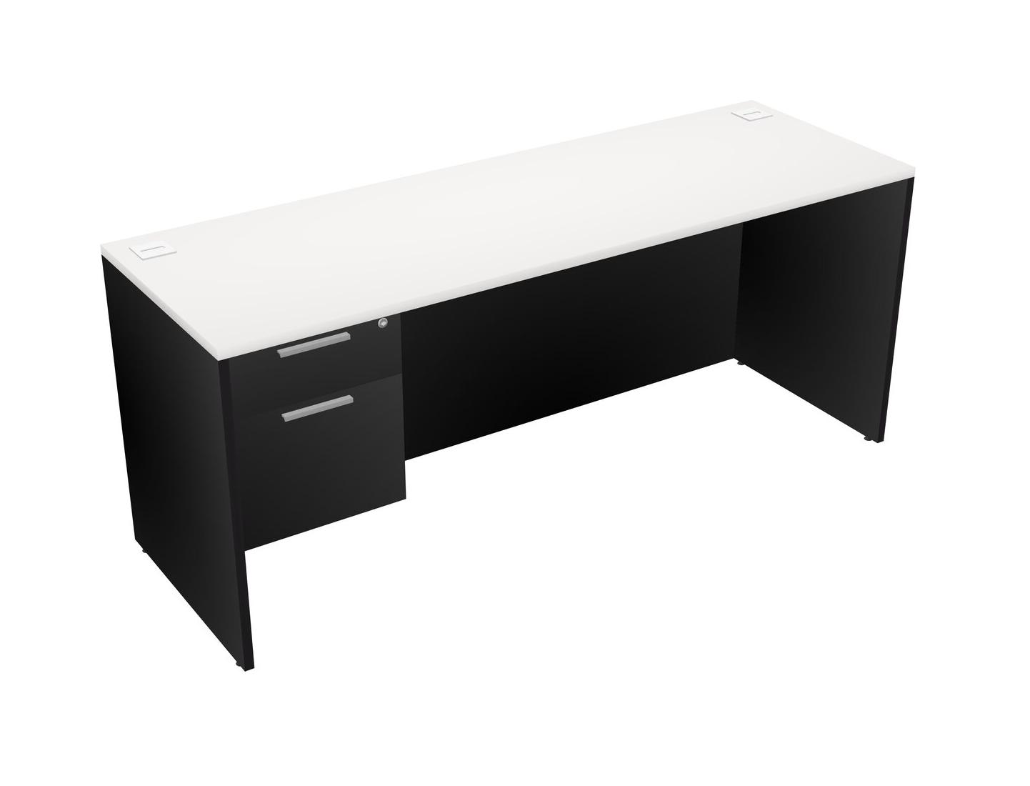 Bureau Rectangulaire Blanc Avec Tiroirs Suspendus Noirs