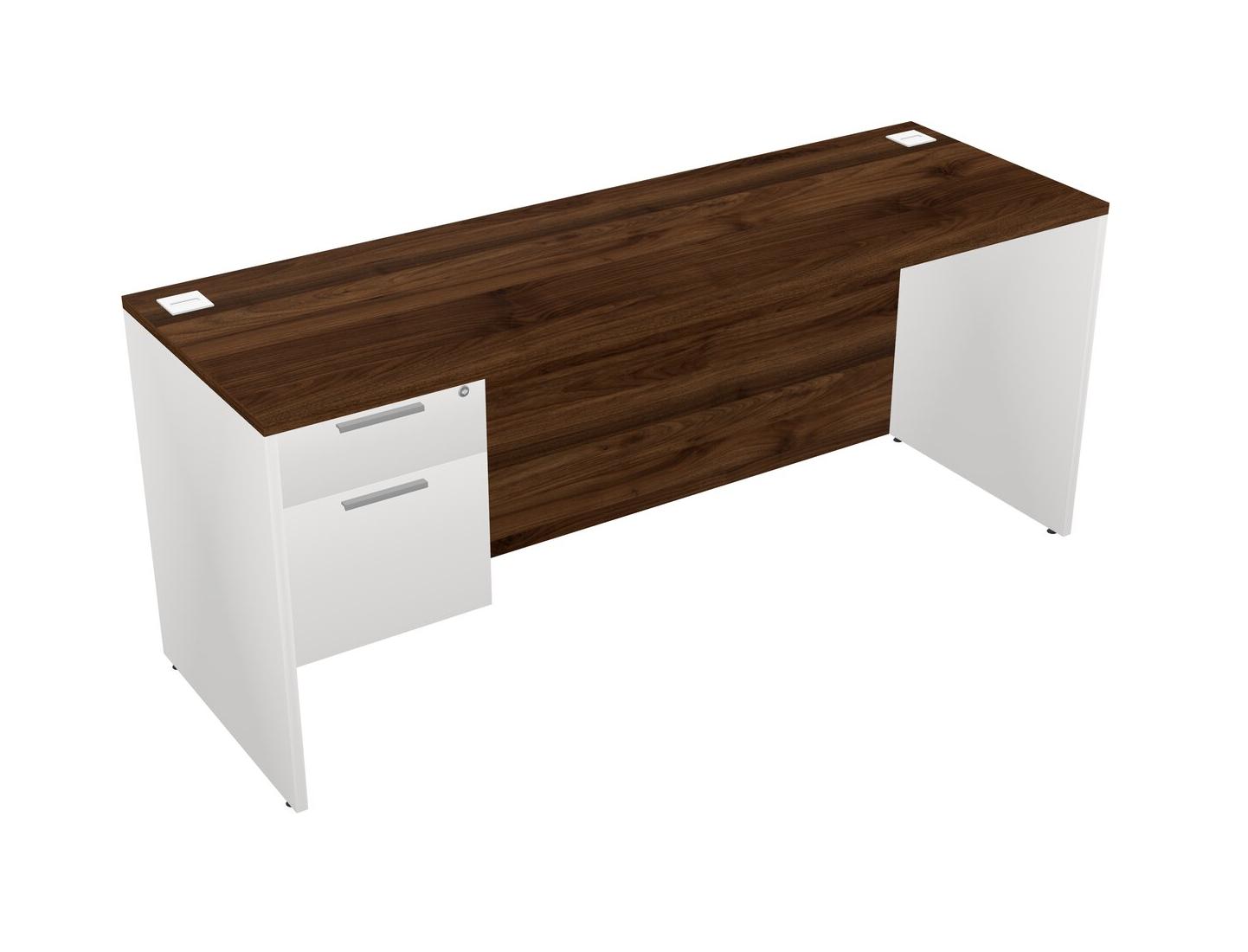 Bureau Rectangulaire En Noyer Columbia Avec Tiroirs Suspendus Blancs