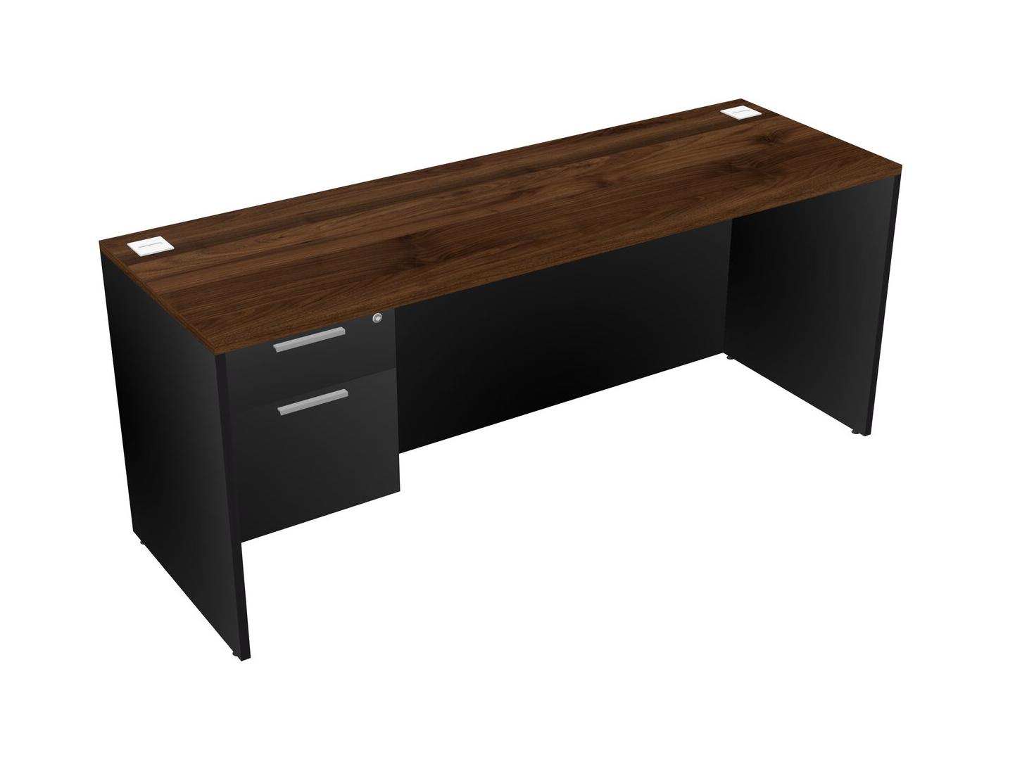 Bureau Rectangulaire En Noyer Columbia Avec Tiroirs Suspendus Noirs