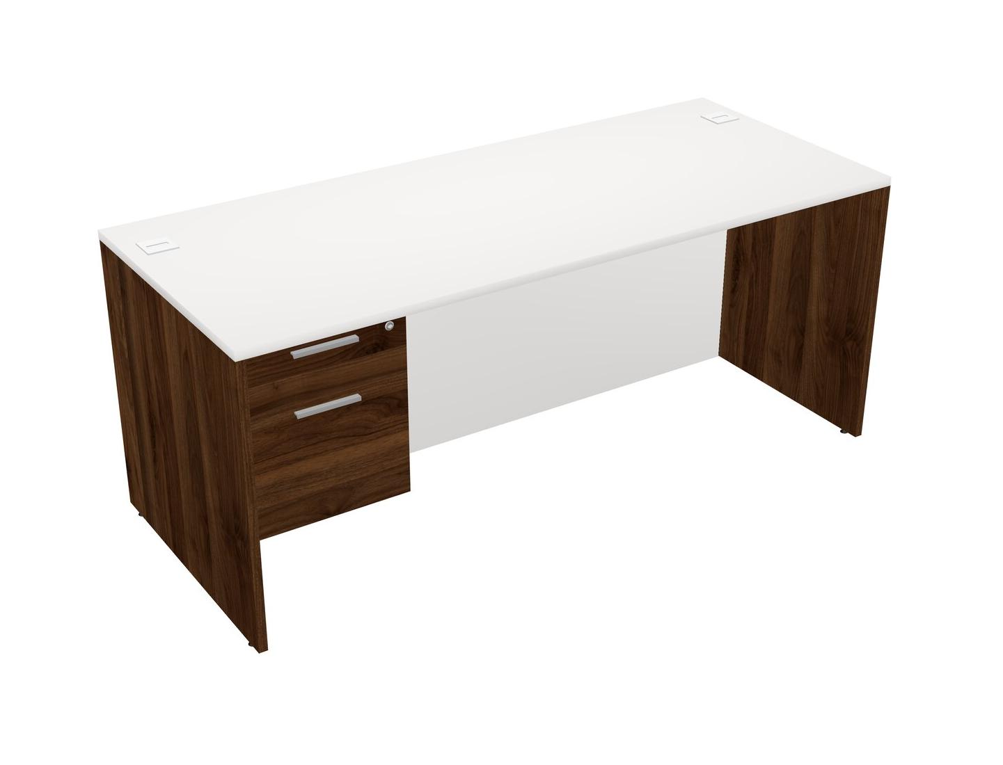 Bureau Rectangulaire Blanc Avec Tiroirs Suspendus En Noyer Columbia