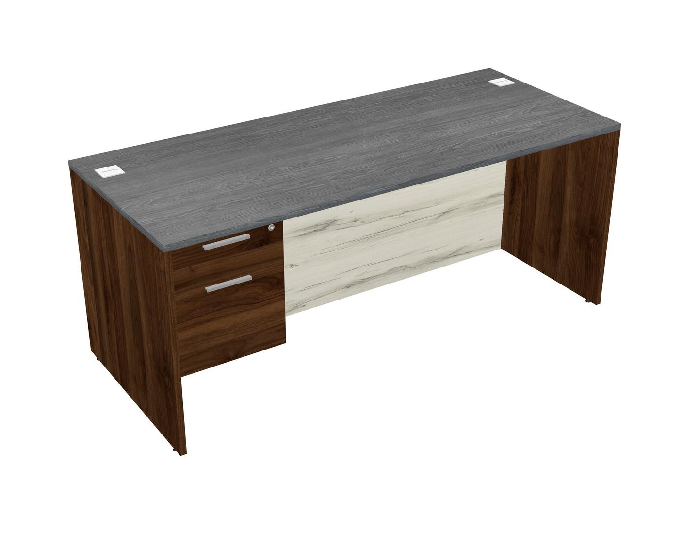 Bureau Rectangulaire Gris Avec Tiroirs Suspendus En Noyer Columbia