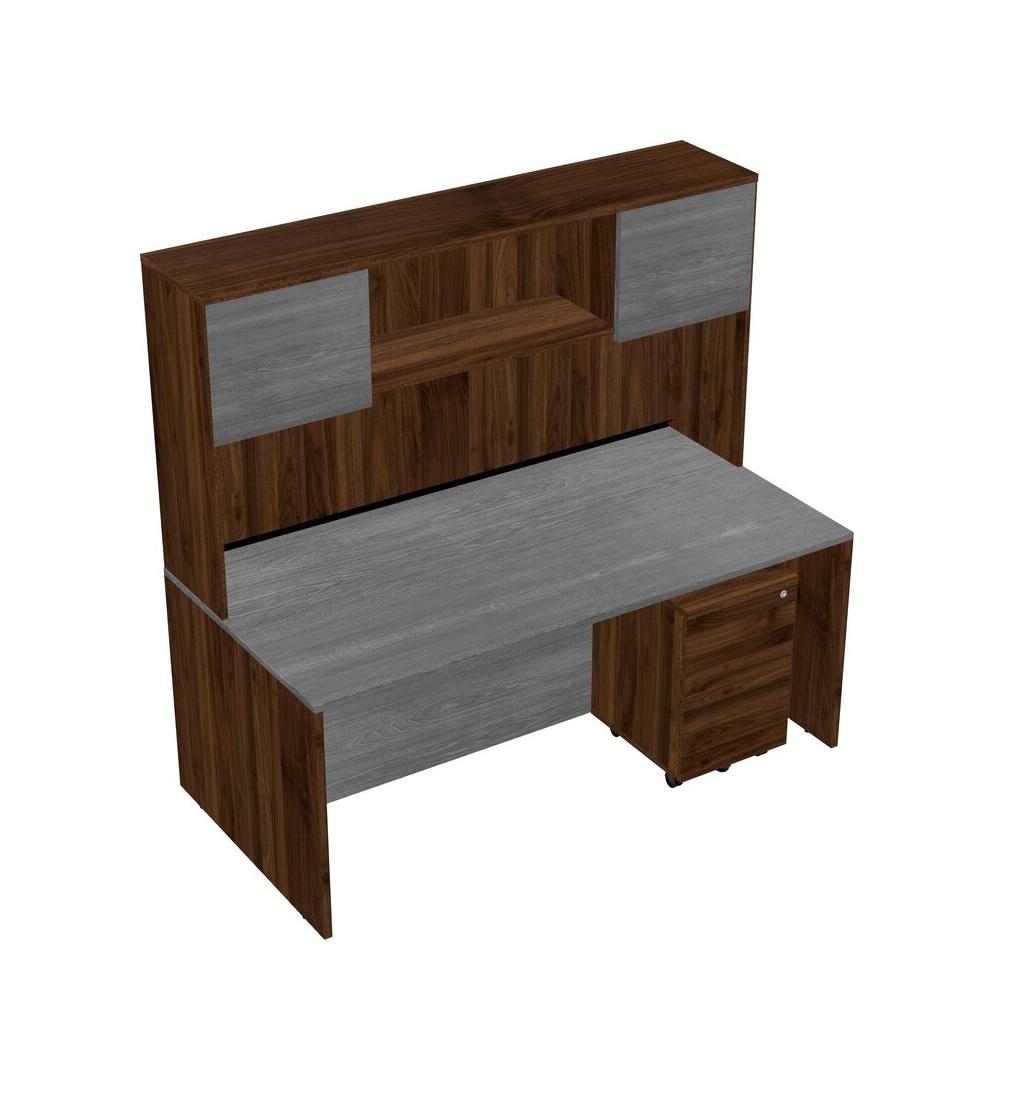 Bureau Rectangulaire Gris Avec Tiroirs Mobiles En Bois De Noyer Columbia Et Huche En Noyer Columbia