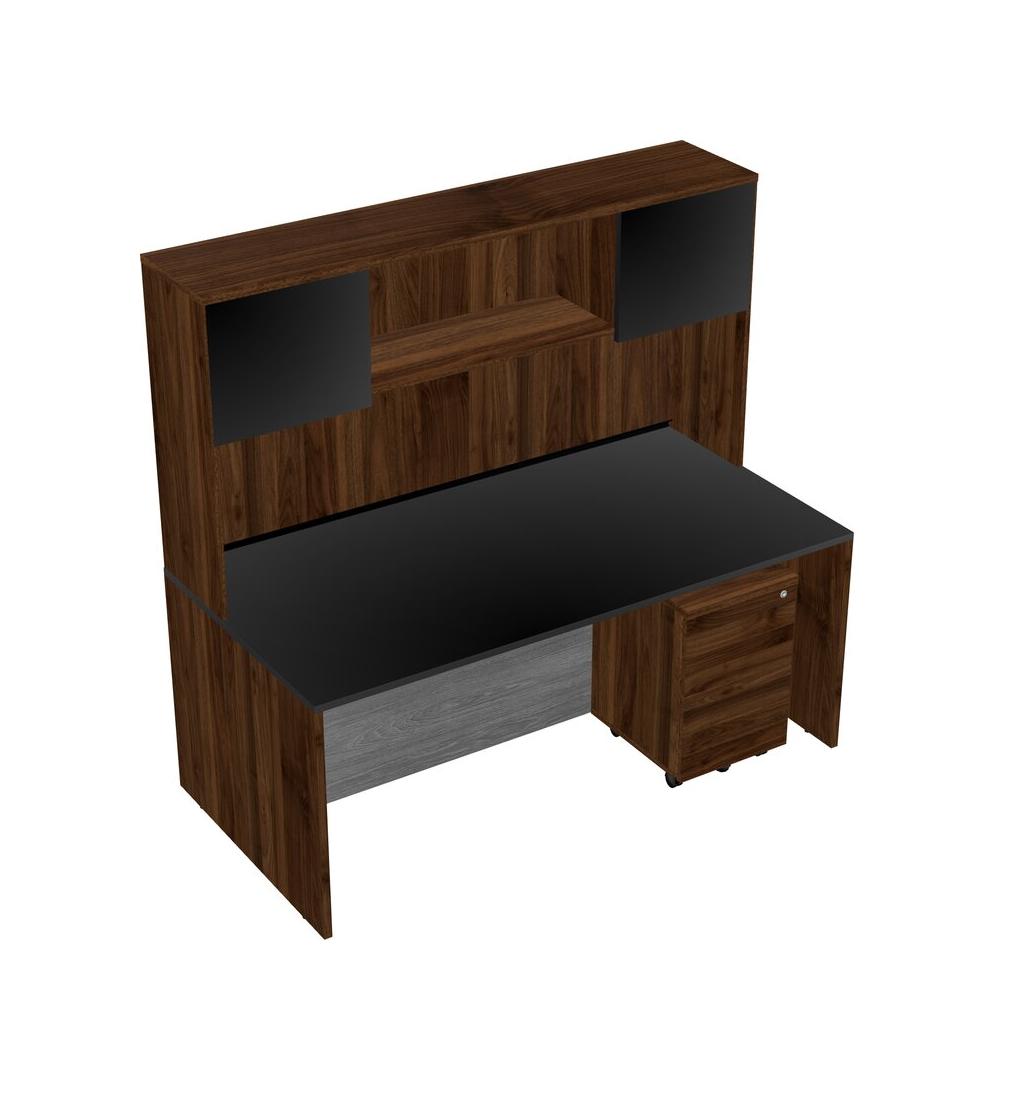 Bureau Rectangulaire Noir Avec Tiroirs Mobiles En Bois De Noyer Columbia Et Huche En Noyer Columbia