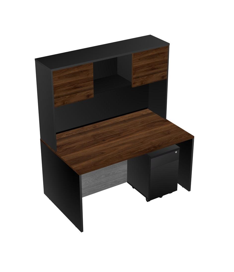 Bureau Rectangulaire En Noyer Columbia Avec Tiroirs Mobiles En Bois Noir Et Clapier Noir