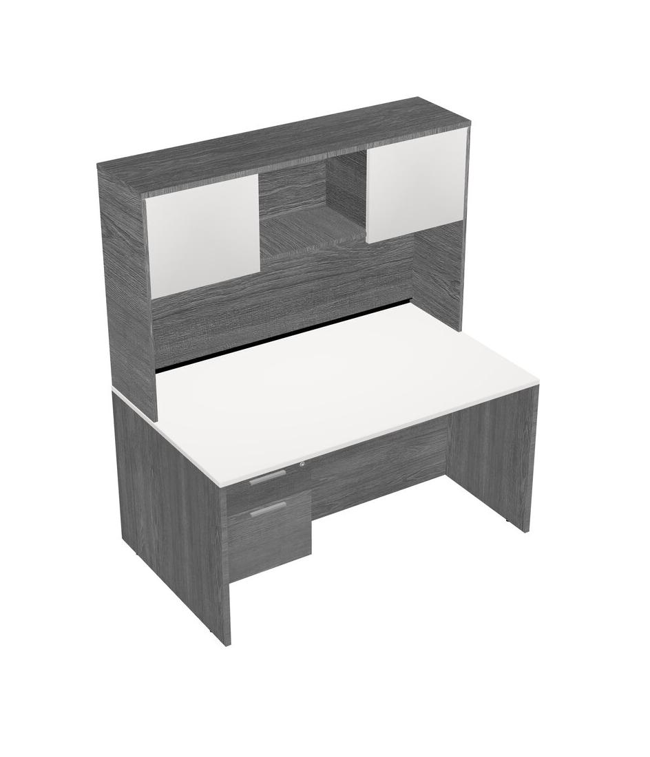 Bureau Rectangulaire Blanc Avec Tiroirs Suspendus Gris Et Bahut Gris