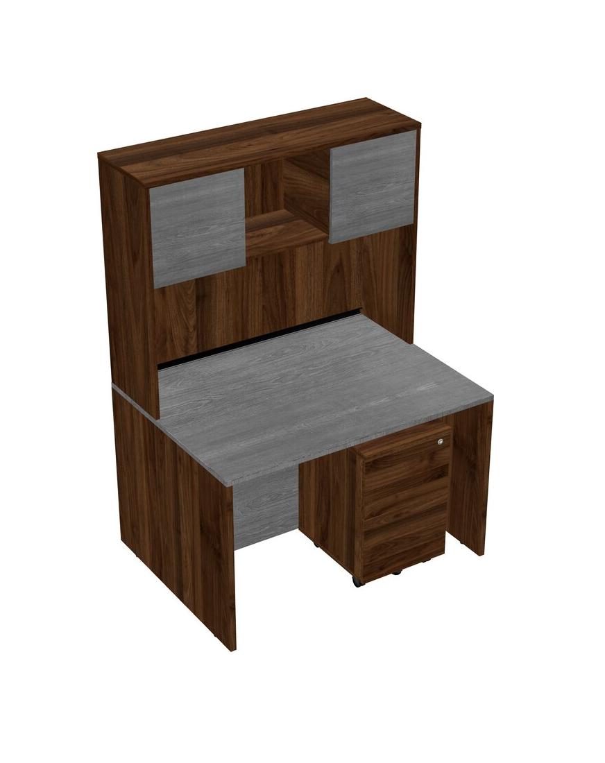 Bureau Rectangulaire Gris Avec Tiroirs Mobiles En Bois De Noyer Columbia Et Huche En Noyer Columbia