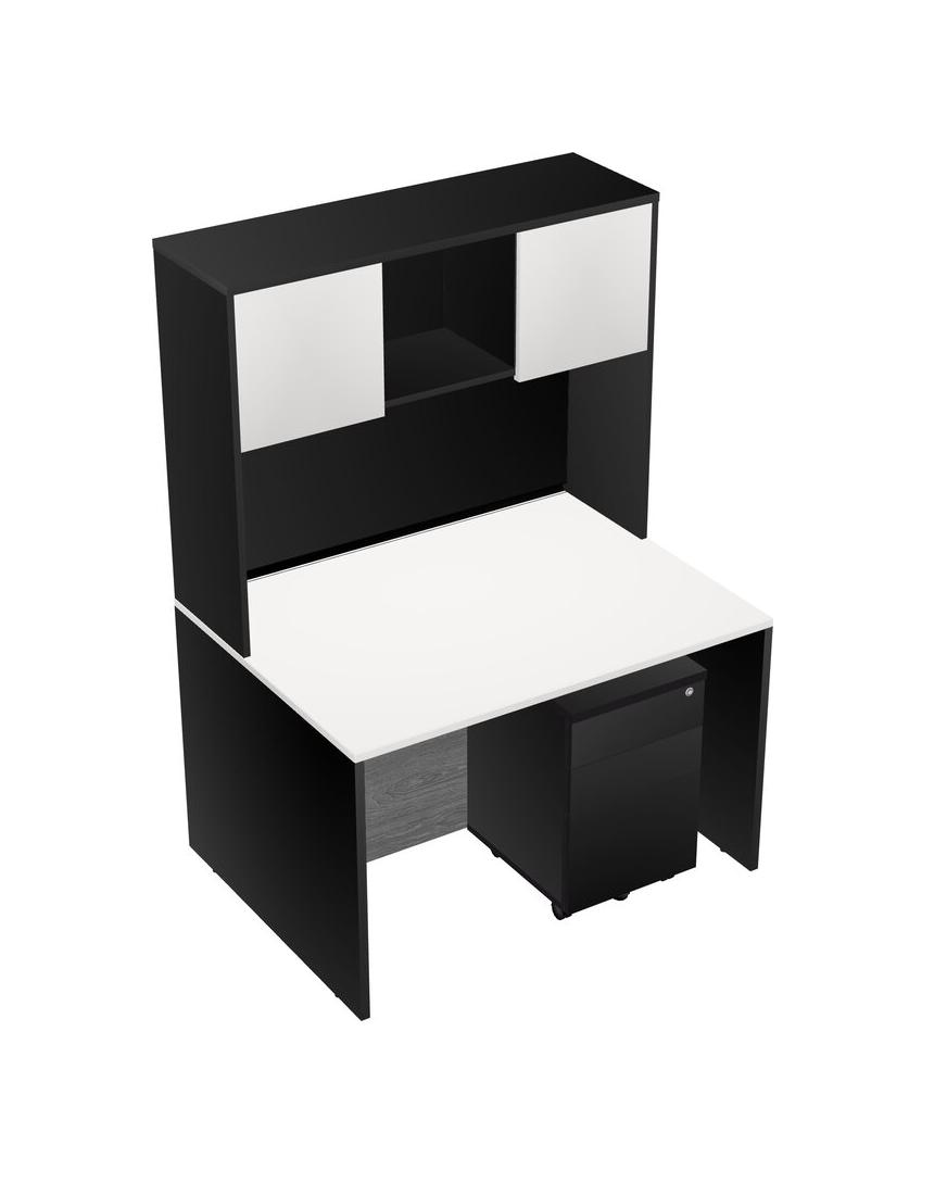 Bureau Rectangulaire Blanc Avec Tiroirs Mobiles En Bois Noir Et Bahut Noir