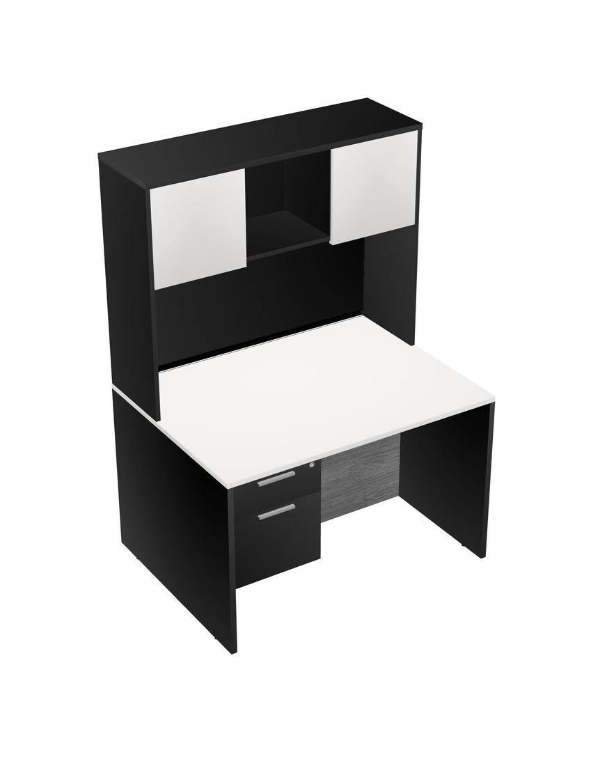 Bureau Rectangulaire Blanc Avec Tiroirs Suspendus Noirs Et Bahut Noir