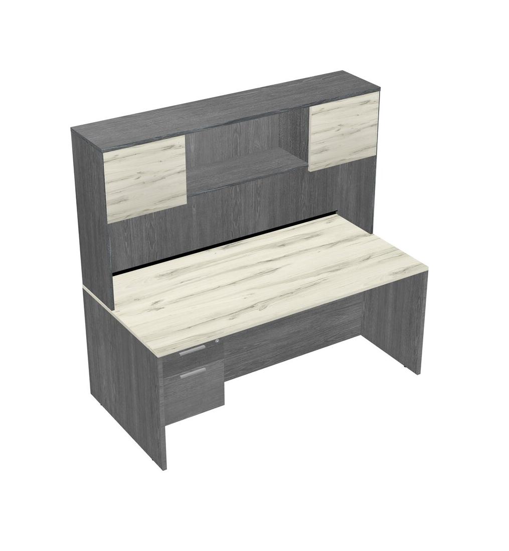 Bureau Rectangulaire Heinne Holz Avec Tiroirs Suspendus Gris Et Huche Grise