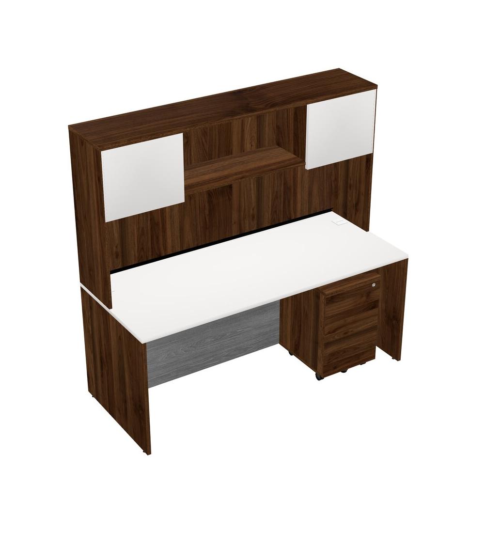 Bureau Rectangulaire Blanc Avec Tiroirs Mobiles En Bois De Noyer Columbia Et Huche En Noyer Columbia