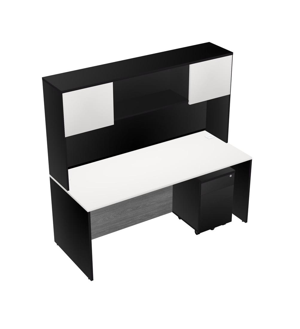 Bureau Rectangulaire Blanc Avec Tiroirs Mobiles En Bois Noir Et Bahut Noir