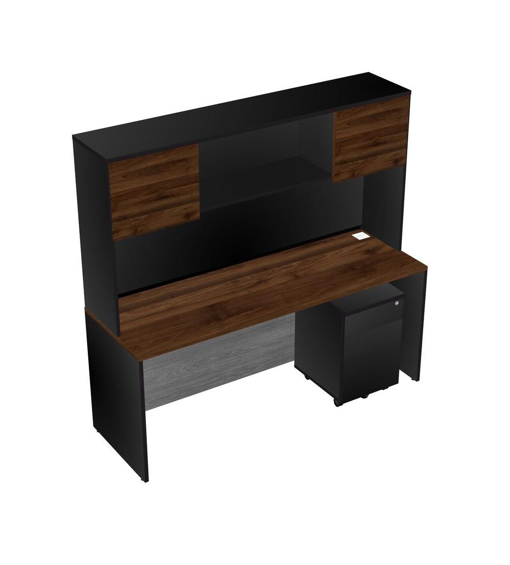 Bureau Rectangulaire En Noyer Columbia Avec Tiroirs Mobiles En Bois Noir Et Clapier Noir