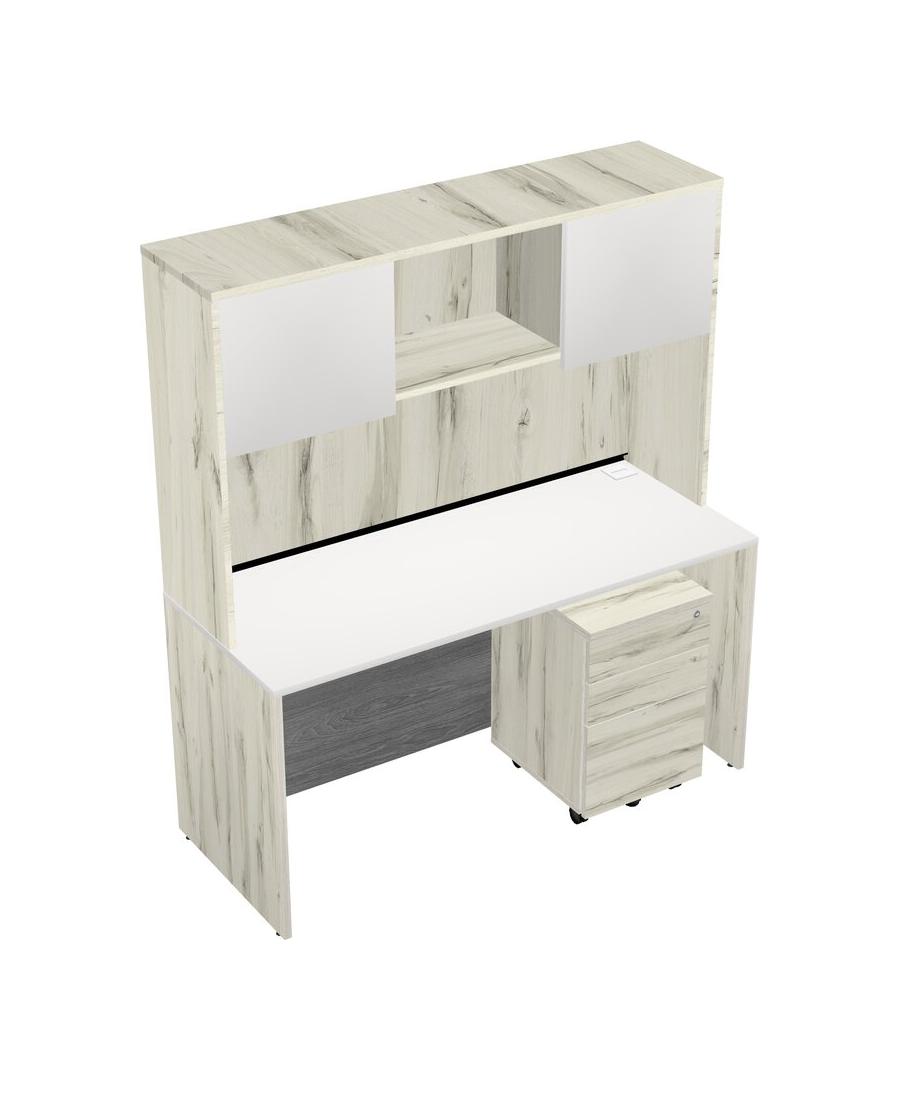 White Rectangular Office Desk Plus Heinne Holz Wooden Mobile Drawers And Heinne Holz Hutch