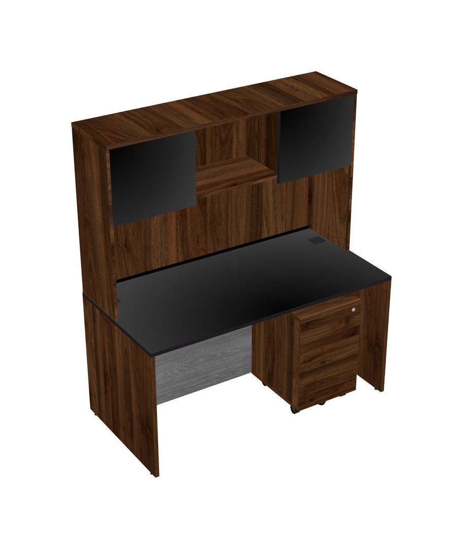 Bureau Rectangulaire Noir Avec Tiroirs Mobiles En Bois De Noyer Columbia Et Huche En Noyer Columbia