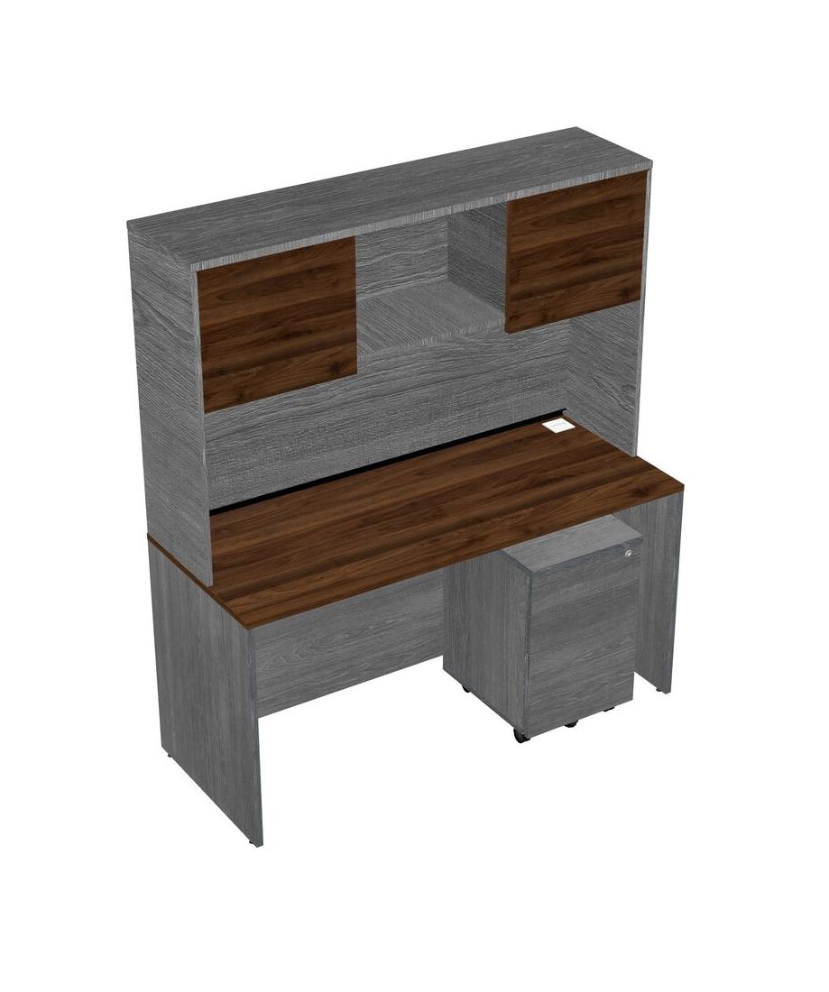 Bureau Rectangulaire En Noyer Columbia Avec Tiroirs Mobiles En Bois Gris Et Clapier Gris